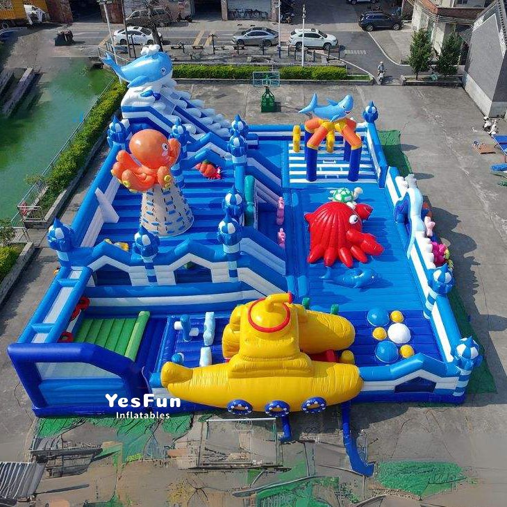 20×20 meter giant seaworld kids inflatable playground theme park with shark and octopus for sale :