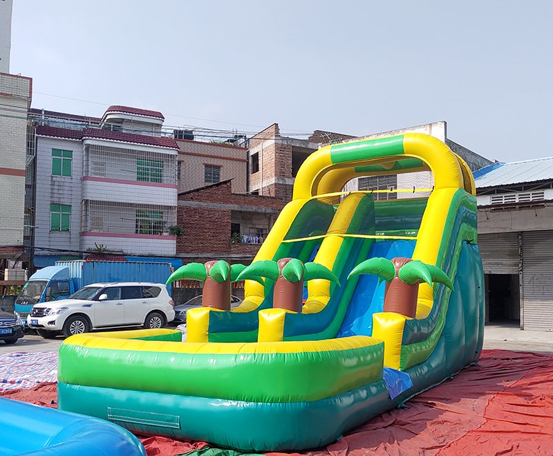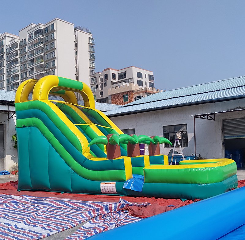 9.2m meter long summer palm tree kids inflatable water slides for parties and backyard: