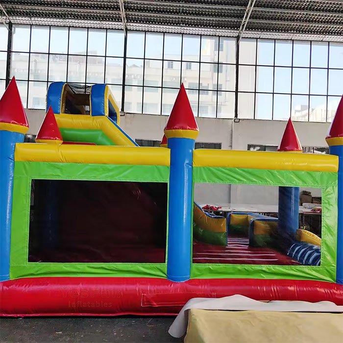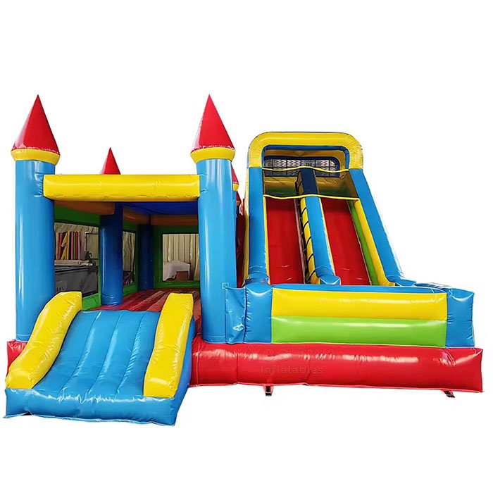 Commercial grade kids rainbow combo inflatable jump house with slide for sales :