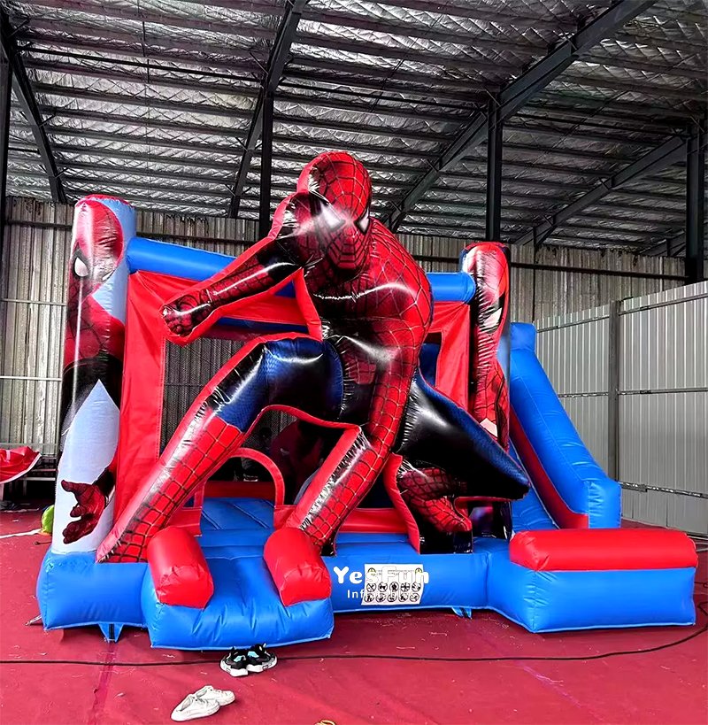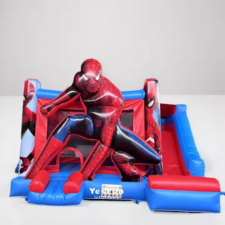 Custom mand indoor kids inflatable spiderman bouncer with slide for sale with commercial grade pvc material:
