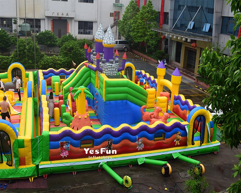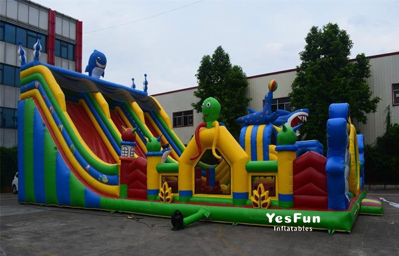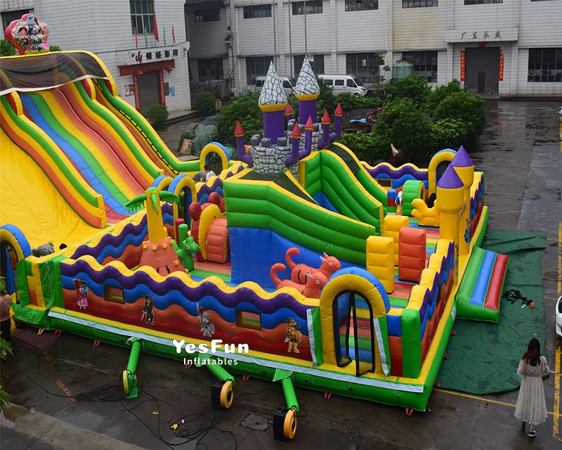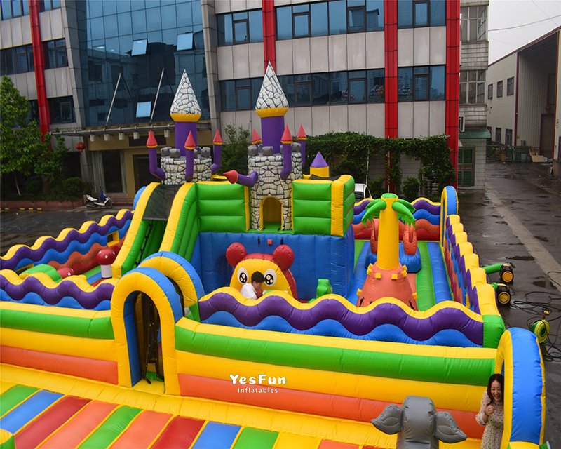 Outdoor blow up kids giant jumping castle inflatable amusement park with big inflatable slide for sale