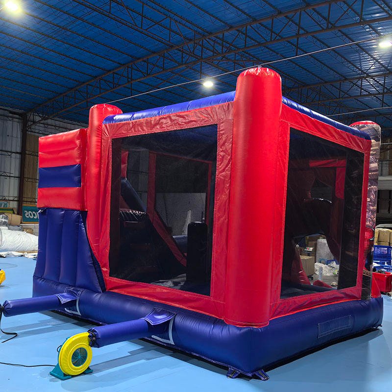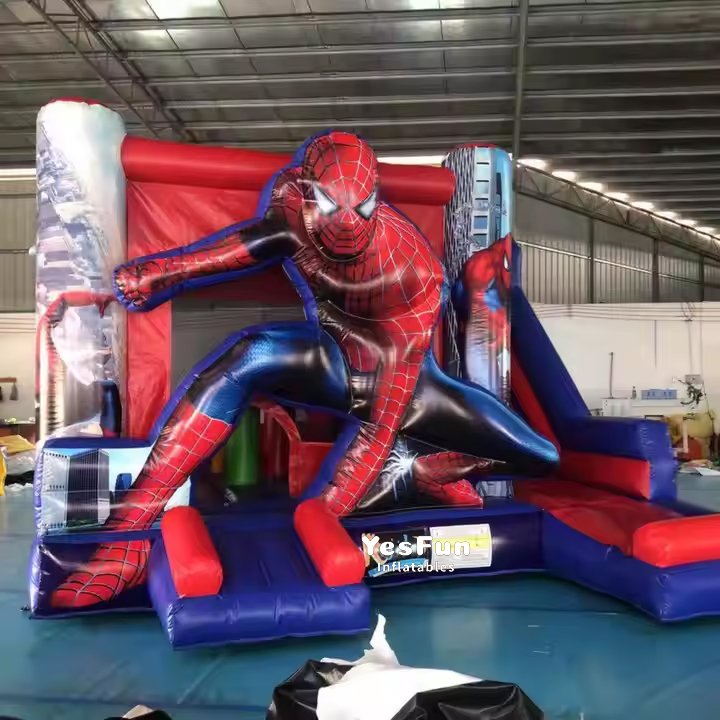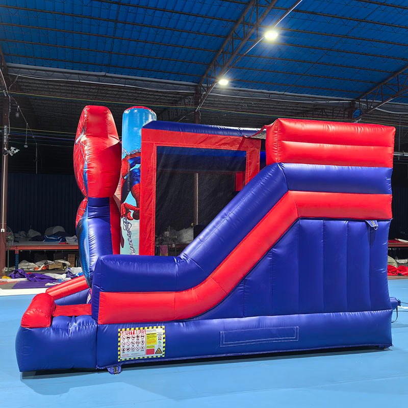 Outdoor commercial pvc kids spiderman inflatable bouncy castle with slide for sale
