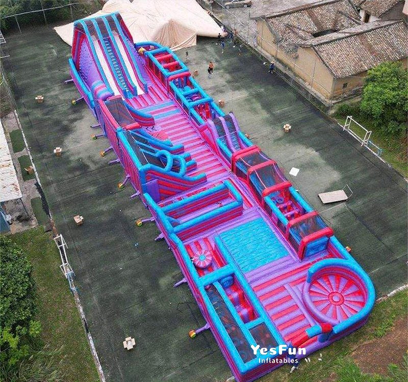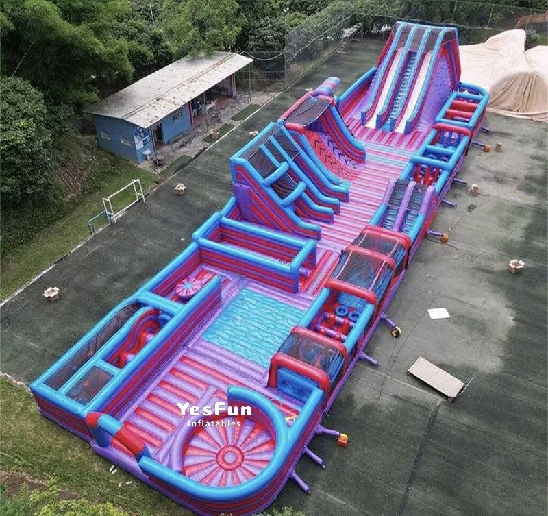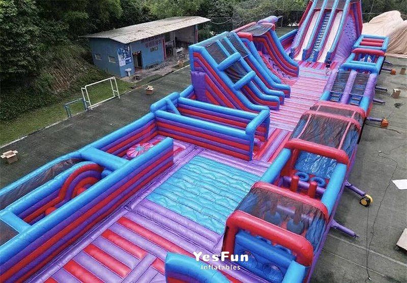 Outdoor giant adults inflatable theme park playground with slides and obstacle course for sale: