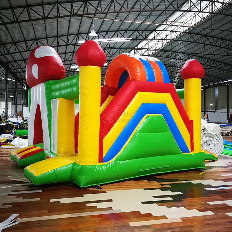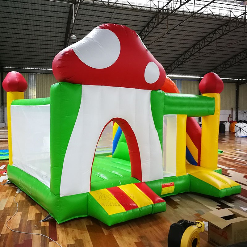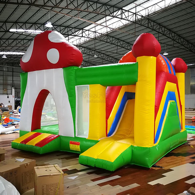 Outdoor lovely mushroom inflatable kids bounce house with slide for backyard or inflatable parks: